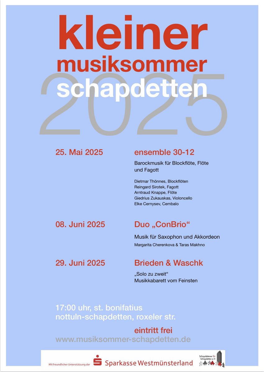 Der "kleine musiksommer schapdetten" ist ein Festival, das unter dem Dach des Vereins Schapdettener für Schapdetten und der katholischen Kirchengemeinde St. Bonifatius mit Musikern aus dem Dorf und der Region für Schapdetten und seine Gäste elf Jahre lang – von 2017 bis 2027 – Konzerte im Sommer organisiert.